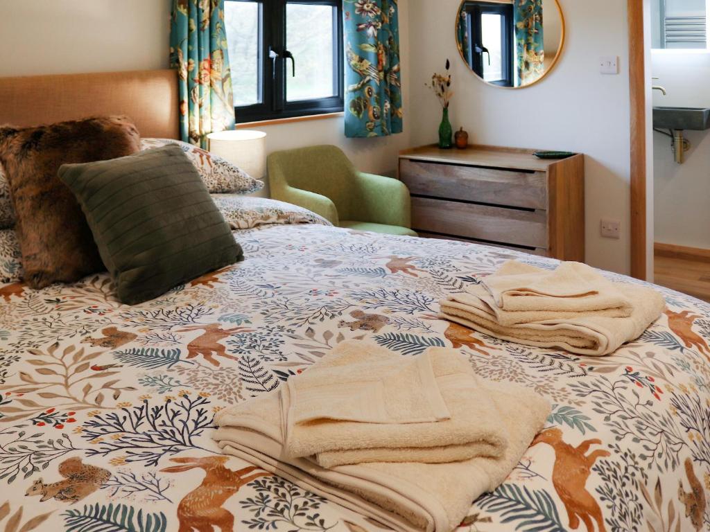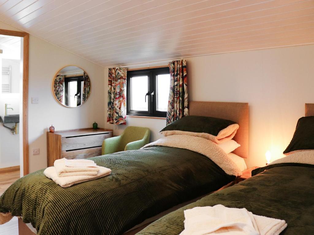 Gwdihŵ Log Cabin in Aberdaron offers a 5-star holiday home experience. The property features two bedrooms and two bathrooms, ensuring comfort for all guests